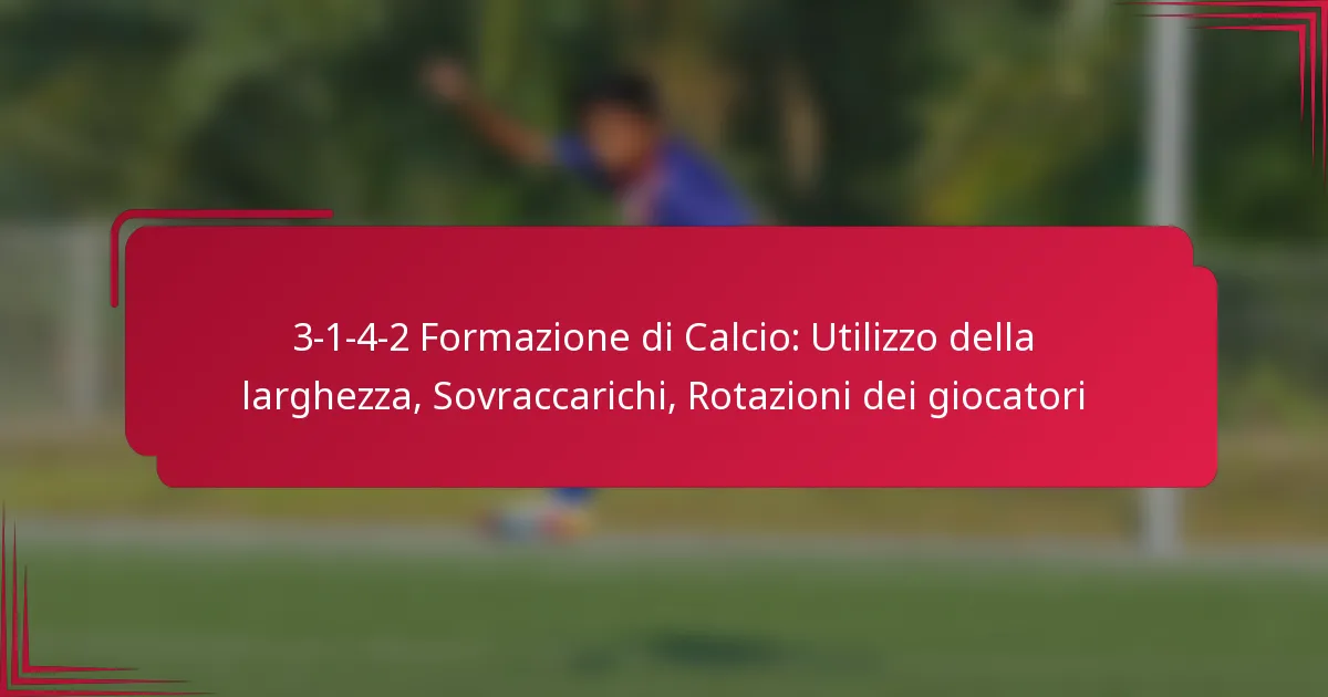 La formazione calcistica 3-1-4-2 è un assetto tattico che enfatizza la larghezza e le rotazioni dei giocatori, consentendo alle squadre di creare sovraccarichi in diverse aree del campo. Questa formazione è composta da tre difensori, un centrocampista difensivo, quattro centrocampisti e due attaccanti, fornendo un approccio bilanciato sia alla difesa che all’attacco.